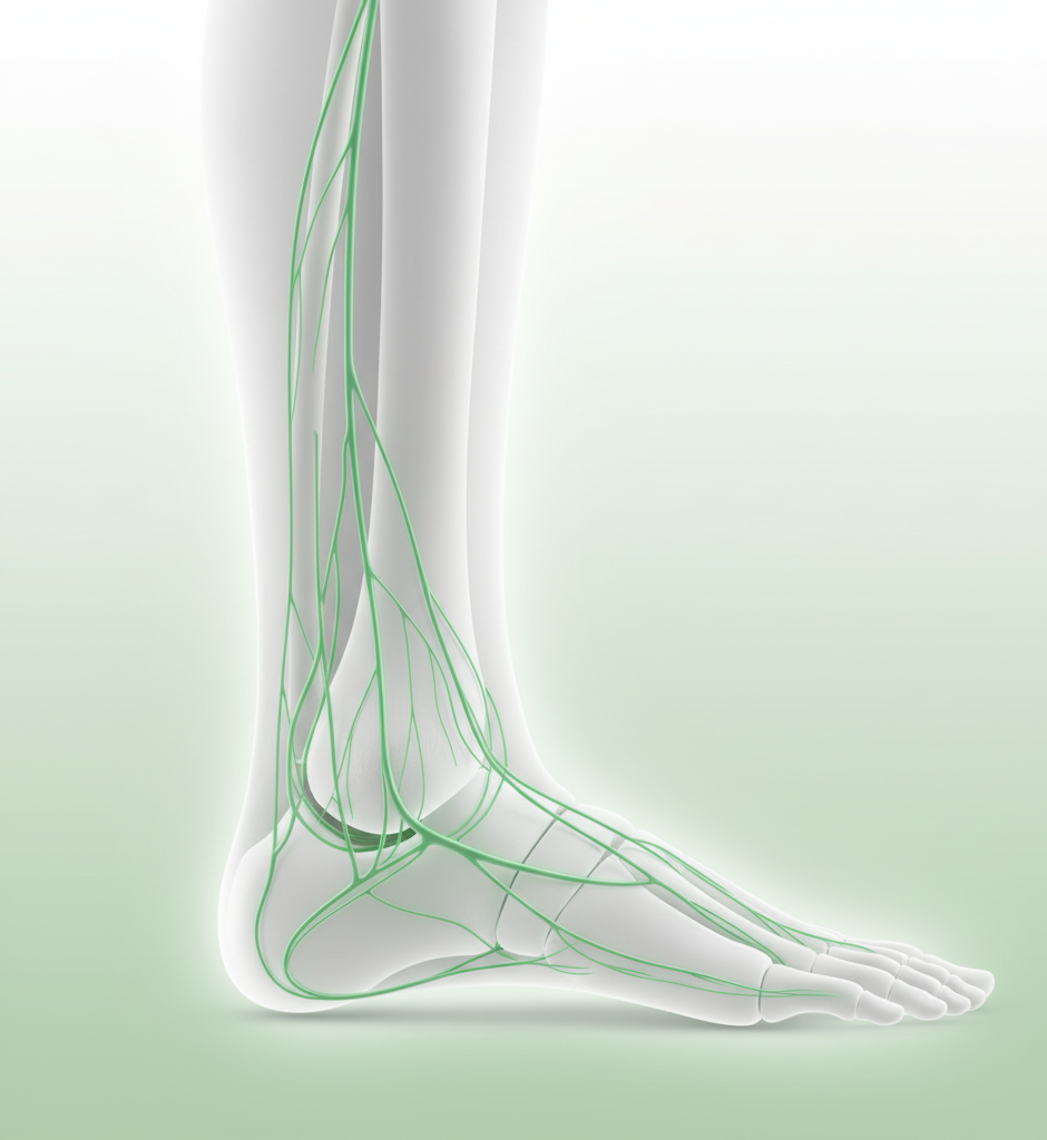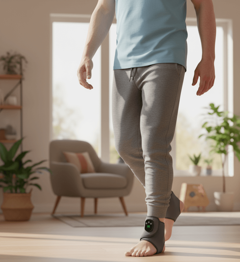 By gently warming the area and adding soft, targeted vibration, the tissues around the ankle relax — allowing circulation to return and the nerves to settle.